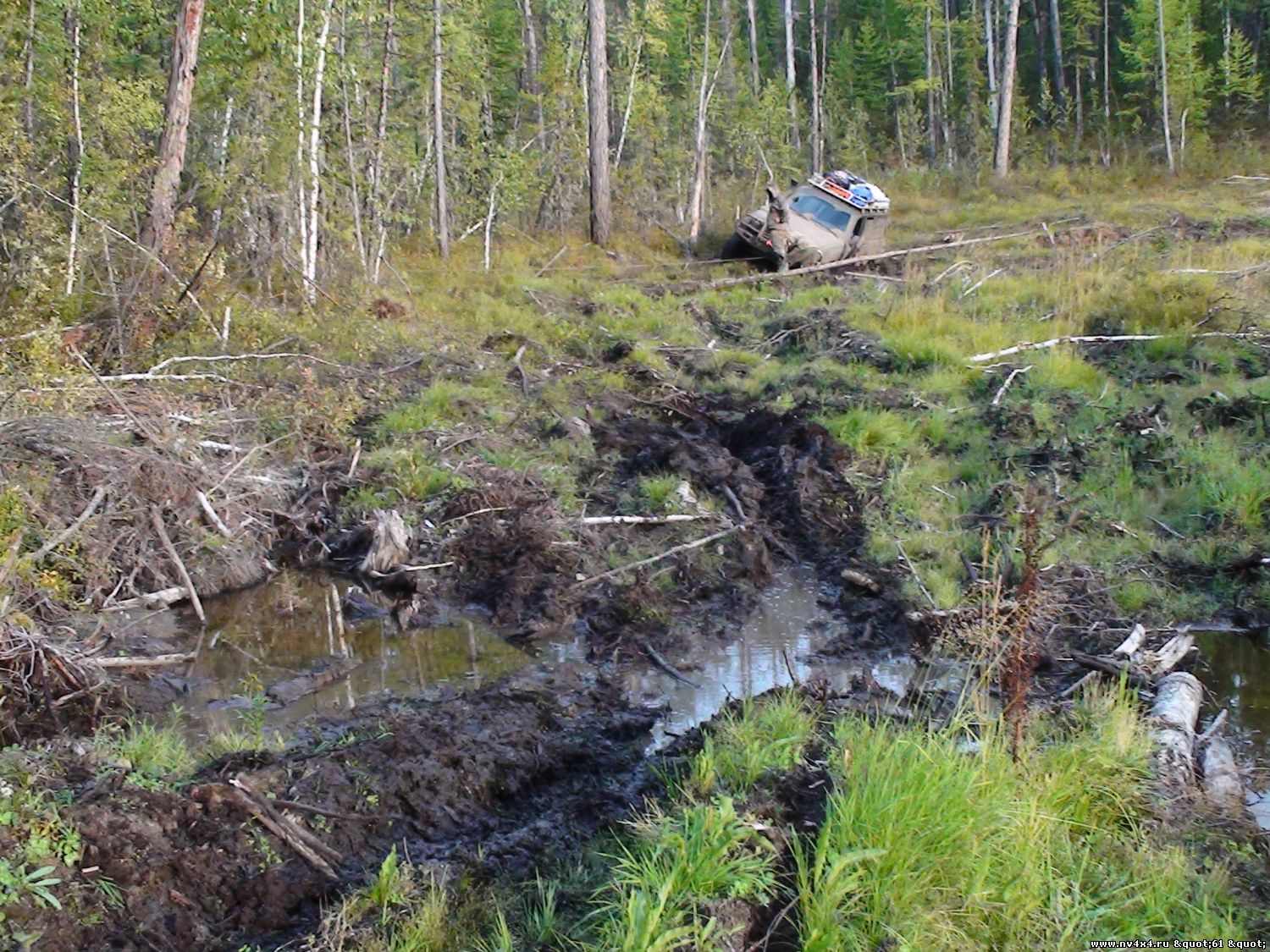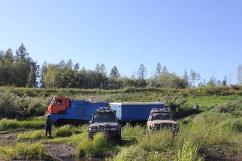 | Вчера вечером вернулся и я. Самое главное, что я для себя вынес из поездки, это то, что "Громила" едет!!! Конечно, я ехал вторым и мне было проще, чем Двенадцатому, но никаких проблем из-за того, что машина ехала хуже ведущей не было. Пеший переход на место падения должен был стать дополнением к главному "развлечению" этого лета - автомобильной трофи-экспедиции Нижневартовск-Ванавара, которая успешно завершилась. 300-километровый спецучасток безлюдной (летом) тайги от Усть-Илимска (точнее от лесовозного буфера в 100 км от Усть-Илимска, до которого есть нормальная твердая дорога) до Ванавары нами был пройден туда за 10 дней, обратно - за 6. С погодой нам "повезло". Дождей во время нашего там пребывания не было. Было солнце, даже жара и много, очень много, очень-очень-очень много гнуса. Противных мелкопакостных мокрецов, размером меньше миллиметра, которые жрали нас заживо. Твари. По дороге туда мы радовались тому, что дорога довольно сухая, но недоумевали, почему ребята на "Ратиборах" ехали всего два дня. Как потом оказалось, лето было довольно мокрым и в сухие года (как раз в 2013 было сухое лето) там, где во время нашей поездки воды в некоторых колеях было почти по пояс, было сухо так, что там ставили палатки прямо на "дороге". В общем, воды в болотах в этом году примерно как и у нас. Уровень воды в Подкаменной Тунгуске на 40 см выше, чем обычно. Собственно поэтому мы и не решились переехать реку и въехать в саму Ванавару на машинах.