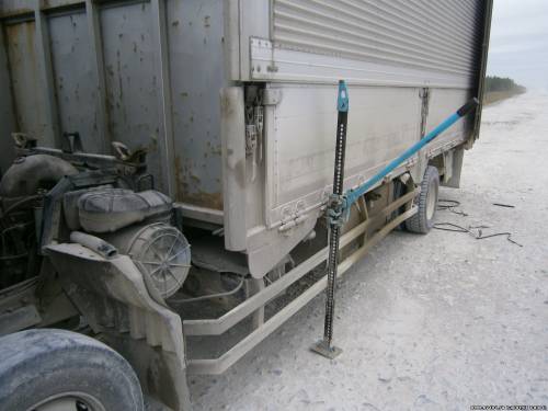 | После ночёвки двинул дальше, до Ивделя остовалось 300 км. После Югорска начилась интересная дорога Предстояло преодолеть расстояние примерно в 60 км по трясучке, скорость на этом участке была 20-40 км в час. После двух часов тряски встретил мужика, он стоял и тормозил проходящие машины, к сожалению никто не останавливался. Я не смог проехать мимо и остановился. Оказалось что у него на грузовике полность лопнул весь пакет рессор и просил он домкрат чтоб хоть как то подремонтироваться.